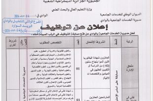 إعلان عن توظيف ads تعلن مديرية الخدمات الجامعية بالوادي عن فتح مسابقة للتوظيف في الرتب المبينة أدناه : الرتبةالتخصص المطلوبالشروط الالتحاقالشروط الأخرىعدد المناصبعون إدارةالعلوم القانونية والادارية أو الحقوقالحائزون شهادة البكالوريا الذين أتموا بنجاح سنتين (02) من الدراسة أو التكوين العاليين في الميادين والتخصصات الآتية: …