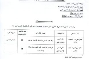أكمل القراءة »إعلان عن توظيف بالمعهد الوطني المتخصص في التكوين المهني نادري بن يوسف البليدة