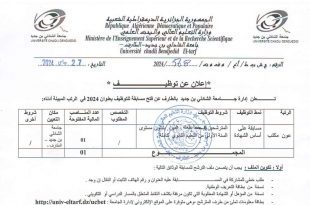 أكمل القراءة »إعلان عن توظيف بجامعة الشادلي بن جديد الطارف