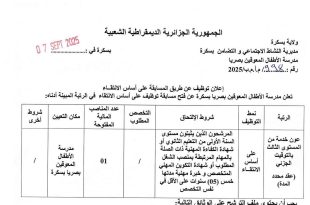 أكمل القراءة »إعلان توظيف بمدرسة الأطفال المعوقين بصريا بسكرة