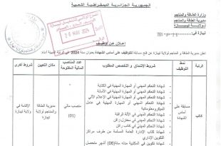 أكمل القراءة »إعلان عن توظيف بمديرية الطاقة والمناجم لولاية تيبازة