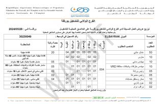 الجمهورية الجزائرية الديمقراطية الشعبية وزارة العمل والتشغيل والضمان الاجتماعي الوكالة الوطنية للتشغيل الفرع الولائي للتشغيل بورقلة ads 2024/05/28 : ورقلة في الرقم: 30230049 المؤسسة: ELBAYRAK البيرق توزيع عروض العمل المسجلة لدى الفرع الولائي للتشغيل بورقلة على الملاحق المحلية للتشغيل إعلان عن مسابقة توظيف بالمعهد …