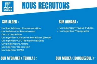 أكمل القراءة »اعلان توظيف بشركة شركة CSCEC ALGERIE في الجزائر العاصمة، المدية، عنابة والمغير