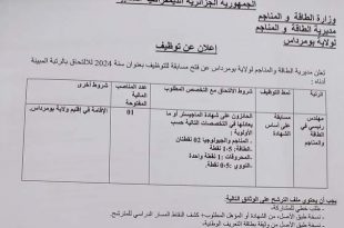 أكمل القراءة »إعلان عن توظيف بمديرية الطاقة والمناجم لولاية بومرداس