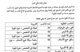 أكمل القراءة »اعلان توظيف بالمؤسسة العمومية للاشغال العمومية غرادية