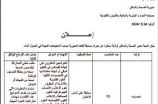 أكمل القراءة »اعلان عن توظيف بمديرية الصحة والسكان لولاية بسكرة