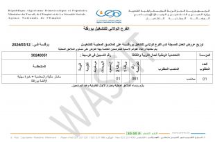 الجمهورية الجزائرية الديمقراطية الشعبية وزارة العمل والتشغيل والضمان الاجتماعي الوكالة الوطنية للتشغيل الفرع الولائي للتشغيل بورقلة ads توزيع عروض العمل المسجلة لدى الفرع الولائي للتشغيل بورقلة على الملاحق المحلية للتشغيل 2024/05/12 : ورقلة في يتم معالجة وإعداد القوائم الاسمية للمترشحين الخاصة بهذا العرض على …