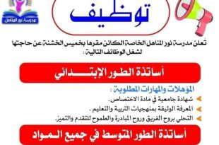 أكمل القراءة »إعلان توظيف بمدرسة نور المناهل الخاصة