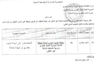 إعلان عن توظيف بمديرية الصيد البحري وتربية المائيات لولاية عين الدفلى