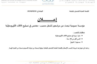 وزارة العمل و التشغيل و الضمان الاجتماعي الوكالة الوطنية للتشغيل الملحقة المحلية للتشغيل بالجلفة الجلفة في: 2025/09/02 ads إعلان مؤسسة عمومية تبحث عن مرشحين لشغل منصب: مختص في تصليح الآلات الكهرومنزلية متطلبات المنصب: خبرة مهنية في تصليح الآلات الكهرومنزلية. السن أقل من 40 سنة. …