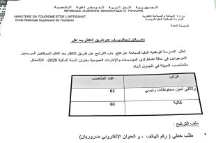 إعلان توظيف عن طريق التكفل بعد نقل بالمدرسة الوطنية العليا للسياحة