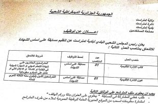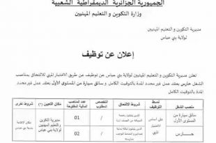 أكمل القراءة »اعلان عن توظيف بمديرية التكوين والتعليم المهنيين لولاية بني عباس