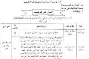 أكمل القراءة »إعلان عن توظيف بمديرية التجارة لولاية بني عباس