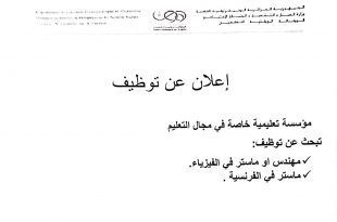 أكمل القراءة »اعلان عن توظيف بمؤسسة تعليمية خاصة في مجال التعليم