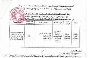 أكمل القراءة »اعلان عن مسابقة على اساس الاختبار بالمديرية العامة للمواصلات السلكية واللاسلكية (52 منصب)