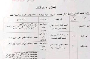 أكمل القراءة »اعلان عن توظيف بالمعهد العالى للتكوين الشبه طبي بولاية المدية (مناصب ادارية)