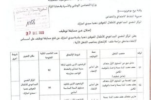 أكمل القراءة »اعلان عن توظيف بالمركز النفسي البيداغوجي للاطفال المعوقين ذهنيا برج بوعريريج