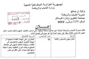اعلان عن توظيف مديرية الشباب والرياضة لولاية عين صالح ads تعلن مديرية الشباب والرياضة لولاية عين صالح عن فتح مسابقة توظيف في الرتب المبينة ادناه عامل مهني من المستوى اثثالث عدد المناصب 02 منصب نمط التوظيف: مسابقة على اساس الاختبار المهني ملف مسابقة على …