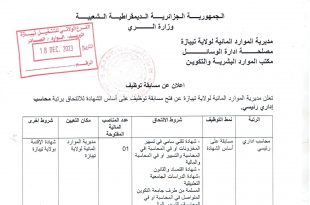 اعلان عن توظيف مديرية التربية لولاية سوق اهراس ads تعلن الوكالة الجزائرية لترقية الاستثمار عن فتح مسابقة توظيف في الجزائر العاصمة وهران بشار غرداية الوادي المسيلة الطارف تبسة ام البواقي عين الدفلى ادرار بالرتب المبينة ادناه متصرف عدد المناصب 20 منصب موزعة كالتالي: الجزائر …