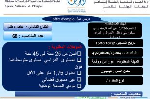 الفرع الولائي للتشغيل تيميمون عرض عمل شركة بي اف قارديناج إي سيكوريتي و نقل الأموال و المواد الحساسة B.F Sécurité ads يعلن الفرع الولائي للتشغيل تيميمون اعن عرض عمل بشركة بي اف قارديناج إي سيكوريتي و نقل الأموال و المواد الحساسة B.F Sécurité كما …