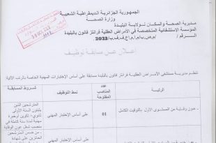 أكمل القراءة »اعلان عن توظيف بمستشفى الامراض العقلية فرانتز فانون البليدة