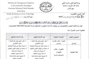 أكمل القراءة »إعلان عن توظيف اساتذة مؤقتين بجامعة محمد الشريف مساعدية سوق اهراس