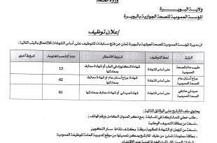 اعلان عن توظيف المؤسسة العمومية للصحة الجوارية البويرة ads تعلن المؤسسة العمومية للصحة الجوارية البويرة عن فتح مسابقة توظيف في الرتب المبينة ادناه طبيب عام في الصحة العمومية عدد المناصب 13 منصب نمط التوظيف: مسابقة على اساس الشهادة جراح اسنان عام في الصحة العمومية …