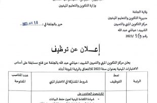 أكمل القراءة »اعلان عن توظيف بمركز التكوين المهني والتمهين الشهيد عياشي عبد الله بالجلفة