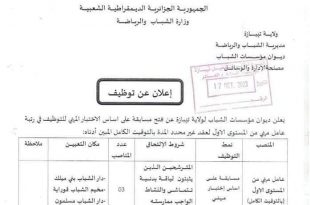 أكمل القراءة »اعلان عن توظيف بديوان مؤسسات الشباب لولاية تيبازة