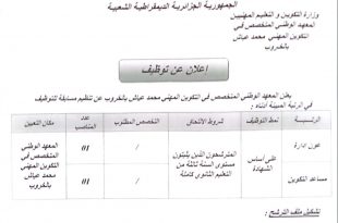 اعلان توظيف بالمعهد المتخصص في التكوين المهني محمد عياش بالخروب قسنطينة