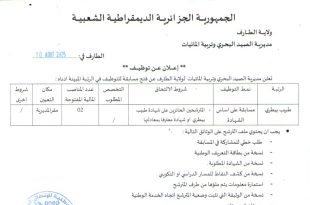 أكمل القراءة »إعلان عن توظيف بمديرية الصيد البحري وتربية المائيات ولاية الطارف