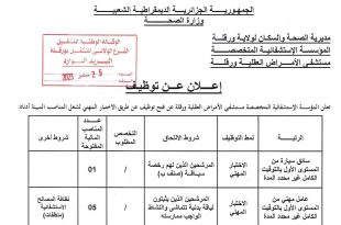 أكمل القراءة »اعلان توظيف بالمؤسسة الاستشفائية المتخصصة مستشفى الأمراض العقلية ورقلة