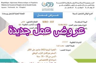 عروض عمل الولايات المعنية بسكرة، بوسعادة، سكيكدة، ام البواقي وعنابة يرجى من المهتمين الاتصال او التقرب من الملحقة المحلية للتشغيل المعنية بالعرض ads الفرع الولائي للتشغيل بسكرة الملحقة المحلية للتشغيل بسكرة عرض عمل مؤسسة زواوي للأشغال المختلفة تعلن الملحقة المحلية للتشغيل بسكرة عن عرض …