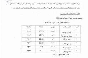 قائمة الناجحين المدرسة العليا للاساتذة بوسعادة ads نتائج اولية لمسابقة التوظيف الاساتذة رتبة استاذ مساعد قسم ‘ب” في المدرسة العليا للاساتذة بوسعادة Résultat du concours de recrutement des maîtres assistants B au niveau de ENS Bousaada . في انتظار التدقيق من طرف مصالح الوظيفة …