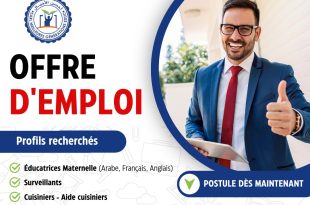ads Ecole Meilleures Générations · OFFRE D’EMPLOI – Rejoignez notre équipe ! Profils recherchés:– Éducatrices Maternelle (Matières: Arabe, Français, Anglais)– Surveillants– Cuisiniers – Aide cuisiniers– Agents d’entretien Vous êtes passionné par l’éducation et le développement des enfants? Rejoignez-nous vite pour la rentrée scolaire 2023/2024 …