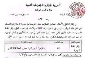 اعلان عن توظيف بمديرية التربية لولاية النعامة