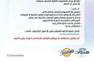 أكمل القراءة »اعلان عن توظيف بشركة مسعد واتر في ولاية البليدة