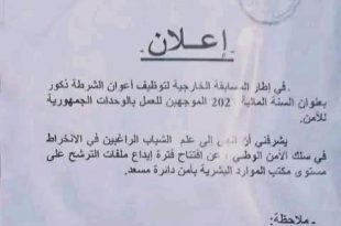 أكمل القراءة »اعلان عن توظيف بالمديرية العامة للامن الوطني لولاية المنيعة