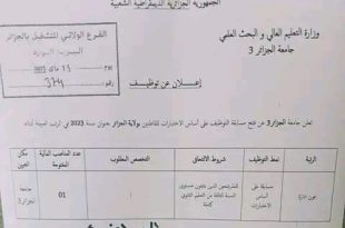 اعلان عن توظيف بجامعة الجزائر 3 ابراهيم سلطان شيبوط