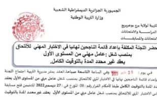 قوائم الناجحين نهائيا في الاختبار المهني بمديرية التربية لولاية برج بوعريرج