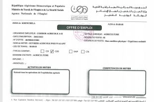 الملحقة المحلية للتشغيل بابار خنشلة عرض عمل شركة كوسيدار COSIDER AGRICOLE A 01 ads تعلن الملحقة المحلية للتشغيل بخنشلة عن عرض عمل بشركة كوسيدار COSIDER AGRICOLE A 01 كما هو موضح ادناه الهيئة المستخدمة شركة كوسيدار COSIDER AGRICOLE A 01 المناصب المطلوبة ouvrier agricole …