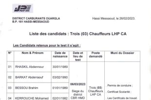 أكمل القراءة »فحص مهني خاص بمؤسسة نفطال Naftal Carburants