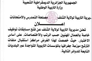 أكمل القراءة »اعلان عن توظيف بمديرية التربية لولاية الشلف (184 منصب)