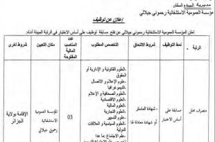أكمل القراءة »اعلان عن توظيف بالمؤسسة العمومية الاستشفائية رحموني جيلالي بالجزائر العاصمة