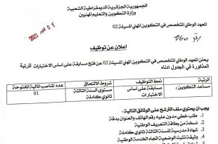 أكمل القراءة »اعلان عن توظيف بمعهد التعليم المهني ورقلة