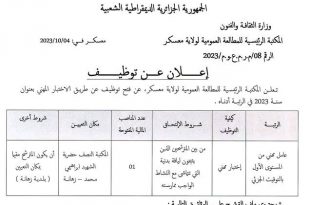 أكمل القراءة »اعلان عن توظيف بالمكتبة الرئيسية للمطالعة العمومية لولاية معسكر