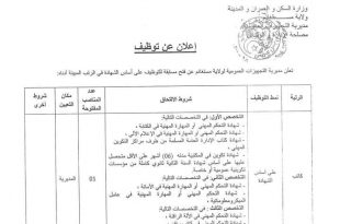 اعلان عن توظيف مديرية التجهيزات العمومية لولاية مستغانم ads تعلن مديرية التجهيزات العمومية لولاية مستغانم عن فتح مسابقة توظيف في الرتب المبينة ادناه كاتب عدد المناصب 02 منصب نمط التوظيف: مسابقة على اساس الشهادة ملف المسابقة على أساس الشهادة طلب خطي يتم تضمين به …