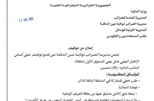 أكمل القراءة »اعلان عن توظيف بمديرية الضرائب جانفي 2024
