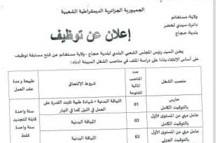 أكمل القراءة »اعلان عن توظيف ببلدية الحجاج ولاية مستغانم