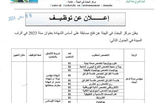 أكمل القراءة »اعلان عن توظيف بمركز البحث في البيئة (45 منصب)